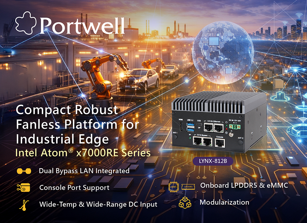 Portwell presenta LYNX-812B: sistema embebido compacto y sin ventilador para una computación Edge industrial segura y fiable en entornos con espacio limitado