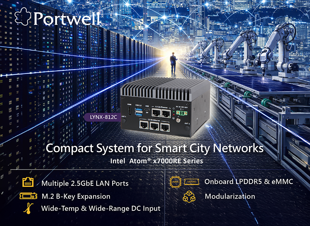Portwell presenta el sistema compacto sin ventilador LYNX-812C con conectividad de alta velocidad 2.5GbE y procesadores Intel Atom® x7000RE