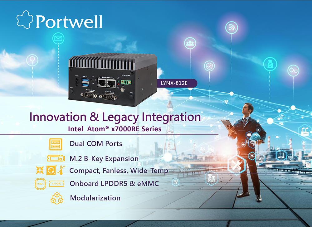 Sistema compacto sin ventilador LYNX-812E de Portwell con Intel Atom® x7000RE para automatización escalable e integración de sistemas heredados