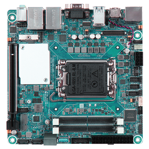 En implementaciones prácticas, esta plataforma puede instalarse en gabinetes de control de automatización, estaciones de trabajo de visión por computadora, nodos de borde de líneas de producción o sistemas de inspección inteligente, sirviendo como el motor central para el cálculo de datos in situ y la coordinación de dispositivos. Impulsado por procesadores de la serie Intel® Core™ Ultra 9/7/5 y el chipset Intel® Q870, soporta memorias duales SO-DIMM DDR5 de hasta 96GB para satisfacer las demandas de control en tiempo real, análisis de imágenes y procesamiento de datos multitarea. También proporciona una ranura PCIe Gen5 x16 para expansión con tarjetas de captura, tarjetas aceleradoras u otros módulos de alto ancho de banda, ofreciendo la flexibilidad requerida para actualizaciones de equipos de producción. Para abordar los requerimientos comunes de control y comunicación en fábricas, la placa integra puertos LAN duales, cinco puertos COM, once puertos USB 3.2, cuatro puertos SATA III, así como interfaces M.2 Key E y M. Estas características permiten una conexión fluida a sensores, PLCs, dispositivos de código de barras, cámaras, módulos de almacenamiento y componentes de comunicación inalámbrica, logrando que el sistema forme un ciclo cerrado más completo, desde la adquisición de datos hasta la ejecución in situ.