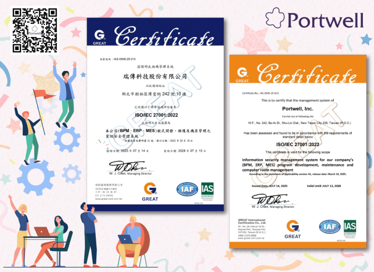 Portwell fue galardonado con la certificación internacional de seguridad de la información ISO 27001, marcando otro hito de excelencia.